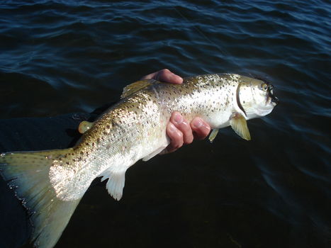 Auch für die Fliegenfischer gilt: Versuchen Sie, die Grönländer-Schwärme zu finden. Deshalb ist es wichtig, mit einer Fliege zu fischen, die im Wasser deutlich auffällt und von den Forellen weithin sichtbar wahr-genommen werden kann. Verwenden Sie deshalb ruhig größere bunte Muster mit etwas Glitzer.